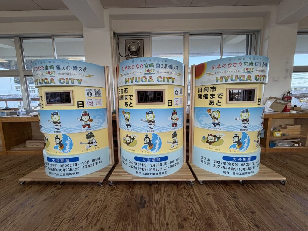日本のひなた宮崎 国スポ・障スポ 日向市実行委員会は、市民の気運醸成を図るため、2027年の大会開催までの残日数を表示するカウントダウンボードの制作を日向工業高等学校に依頼し、この度、完成したことから2月3日(火)、国スポ開催まで600日を記念し、カウントダウンボードの除幕式を行いました!