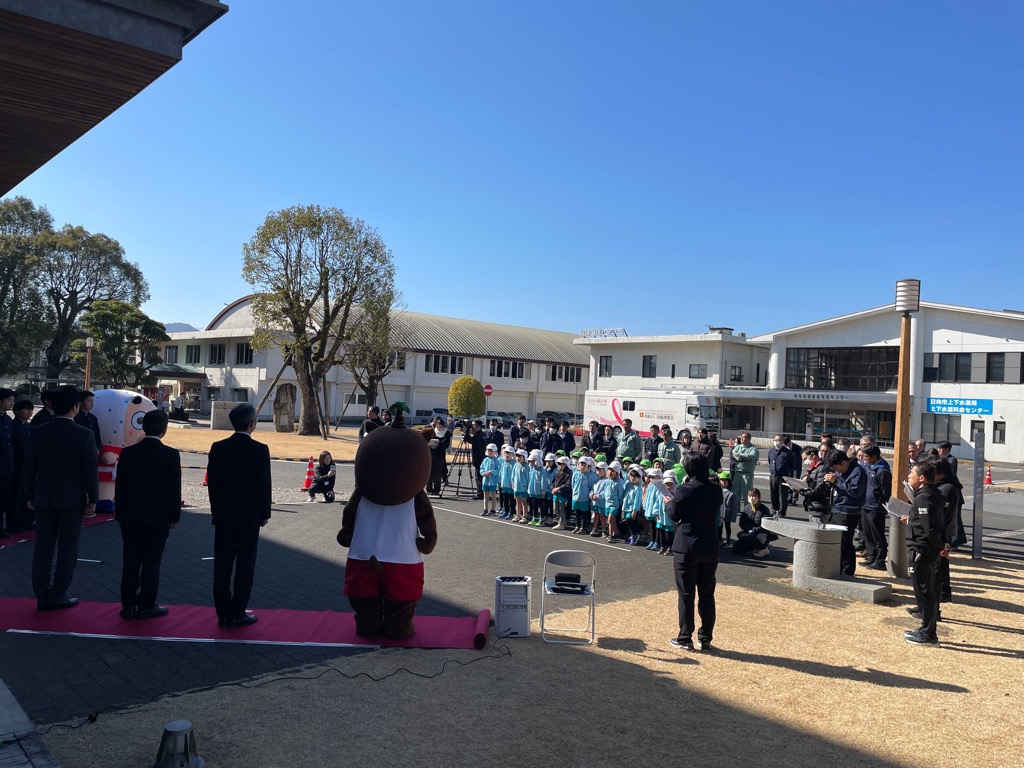 式典には、富高幼稚園の園児の皆さんや、国スポ・障スポ大会マスコットキャラクターみやざき犬のむぅちゃんと日向市観光宣伝キャラクターひょう助さんが駆けつけてくれました!